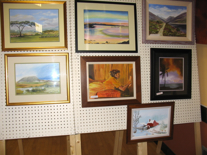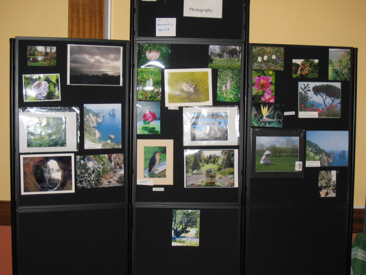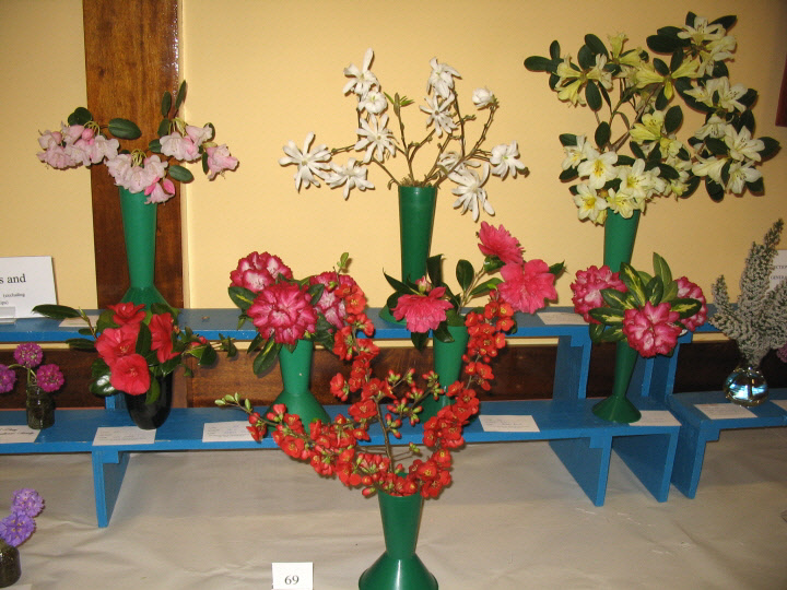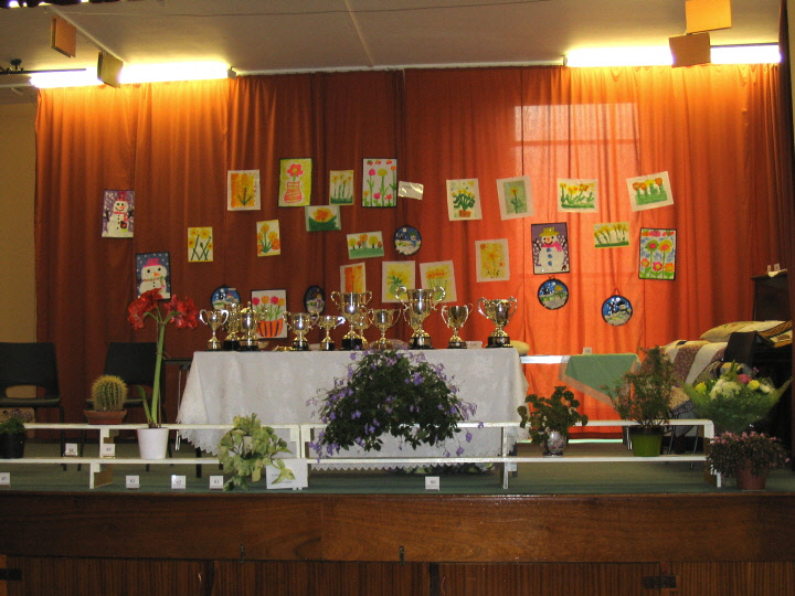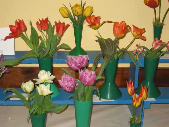 There are photographs, trios of tulips , flowering shrubs, plants in pots, and pots of prizes.